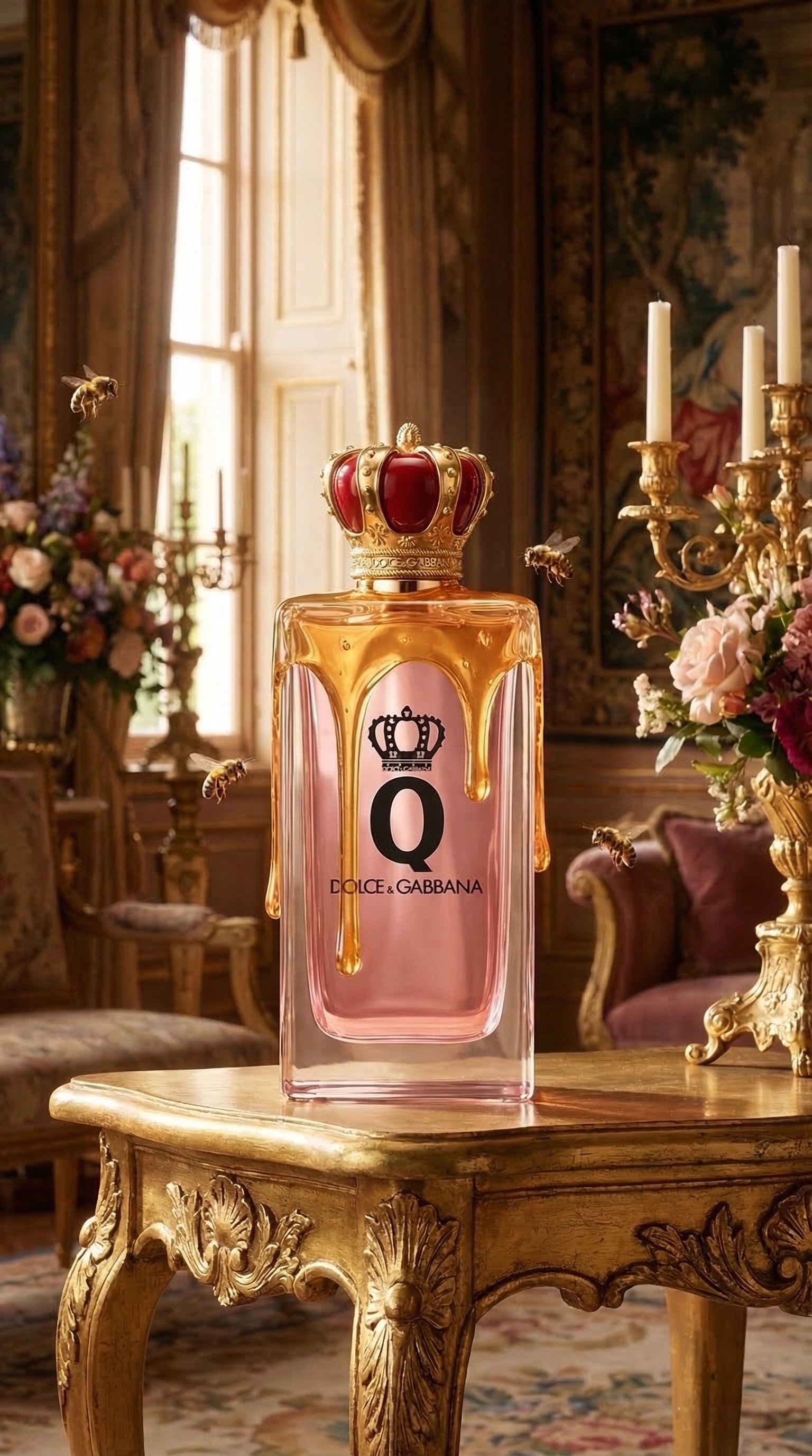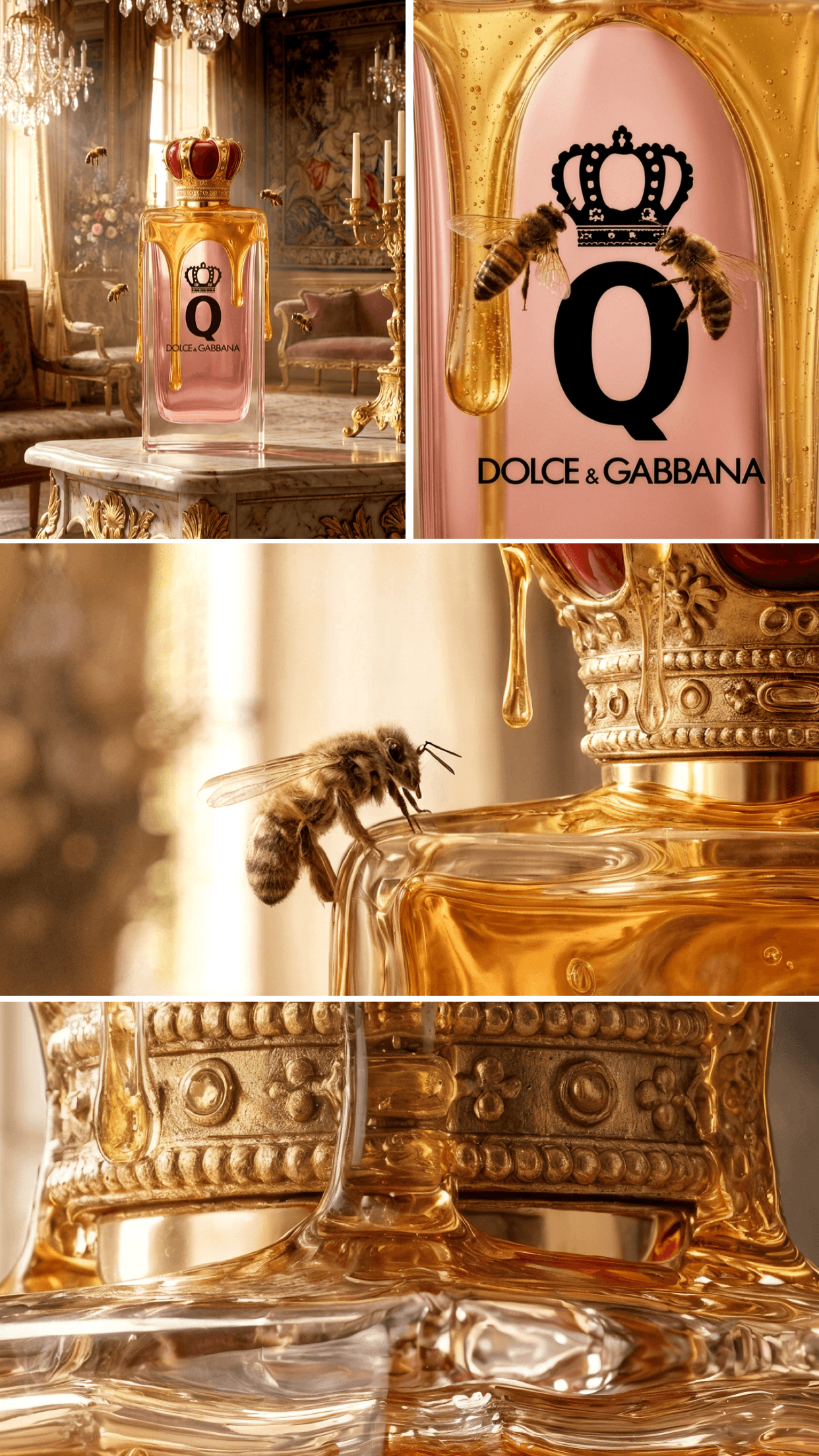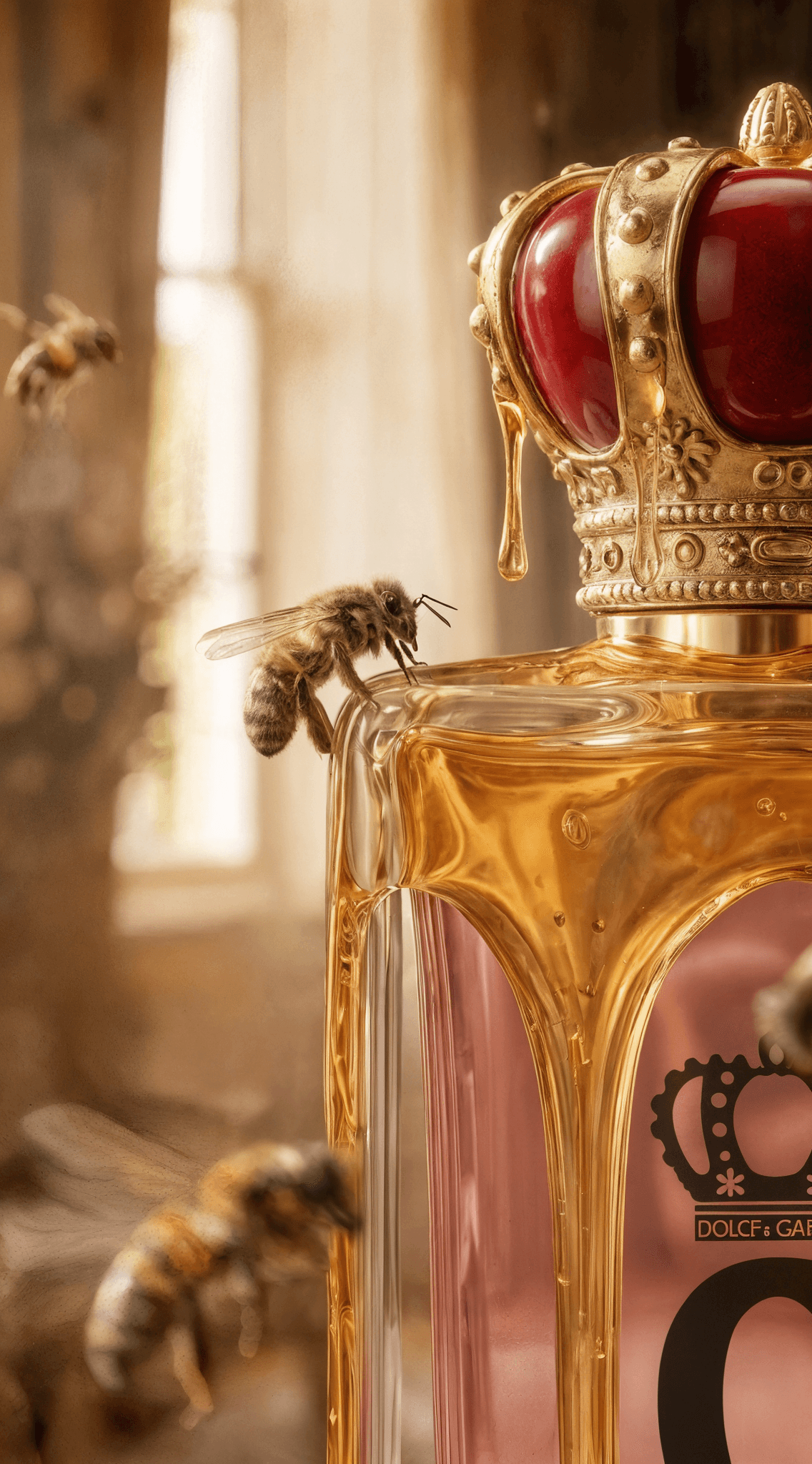 Inspired by the opulent aesthetics of Bridgerton and the baroque grandeur of Dolce & Gabbana, this campaign explores the intersection of sweetness and primal power. I created a visual narrative where a scent is trapped in golden honey—a fragrance that doesn’t just attract, it completely consumes. In a series of hypnotic visuals, hyper-realistic bees are drawn to the honey-coated bottle, landing meticulously on the viscous surface. This project balances delicate beauty with a sense of inescapable temptation, captured through advanced AI.