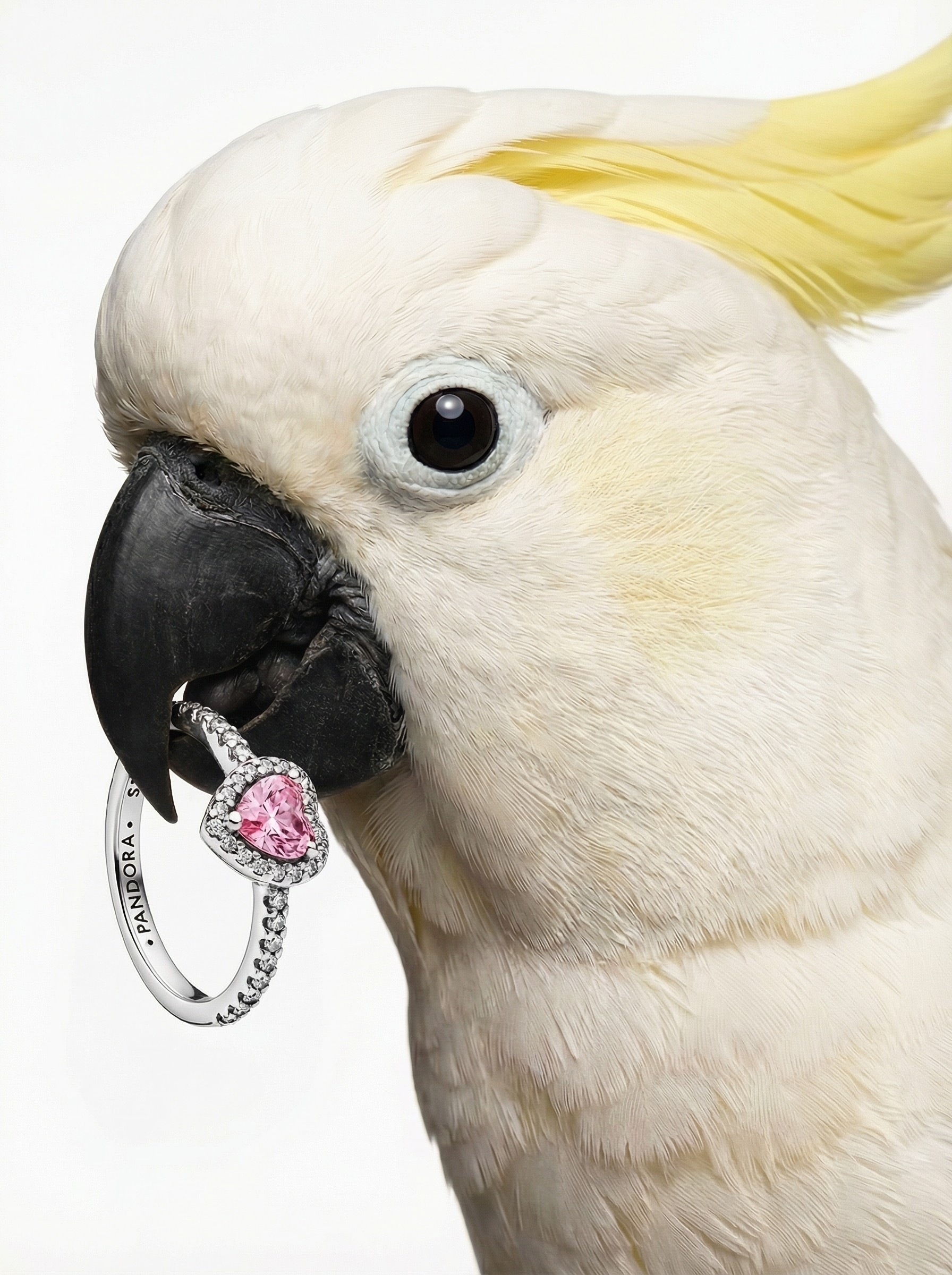 An AI-driven campaign concept for jewelry that explores bold visual storytelling through contrast and symbolism. The project features vibrant parrots in a controlled studio setting, captured in close-up to emphasize color, texture, and intricate detail. Each bird delicately holds gemstone jewelry, creating a striking interplay between natural vibrancy and refined craftsmanship. The minimal, studio-based composition ensures full focus on form, brilliance, and visual impact, resulting in a distinctive and memorable brand narrative.