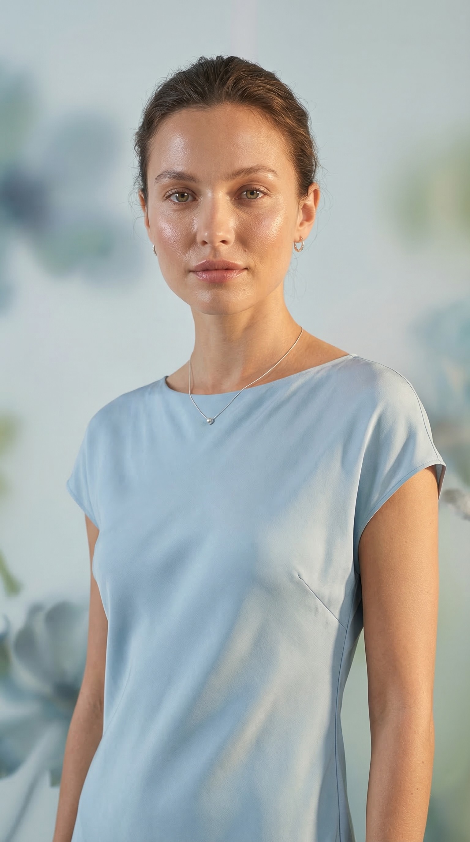 An AI-driven fashion concept focused on refined visual storytelling and tactile sensitivity. The project emphasizes the softness of texture, the delicacy of the model, and a sense of natural, understated beauty. Subtle floral elements in the background enhance the atmosphere without distracting from the garment, allowing simplicity to remain the central visual language. Every detail — from material rendering to light and composition — is intentionally minimal, highlighting purity, elegance, and emotional depth.