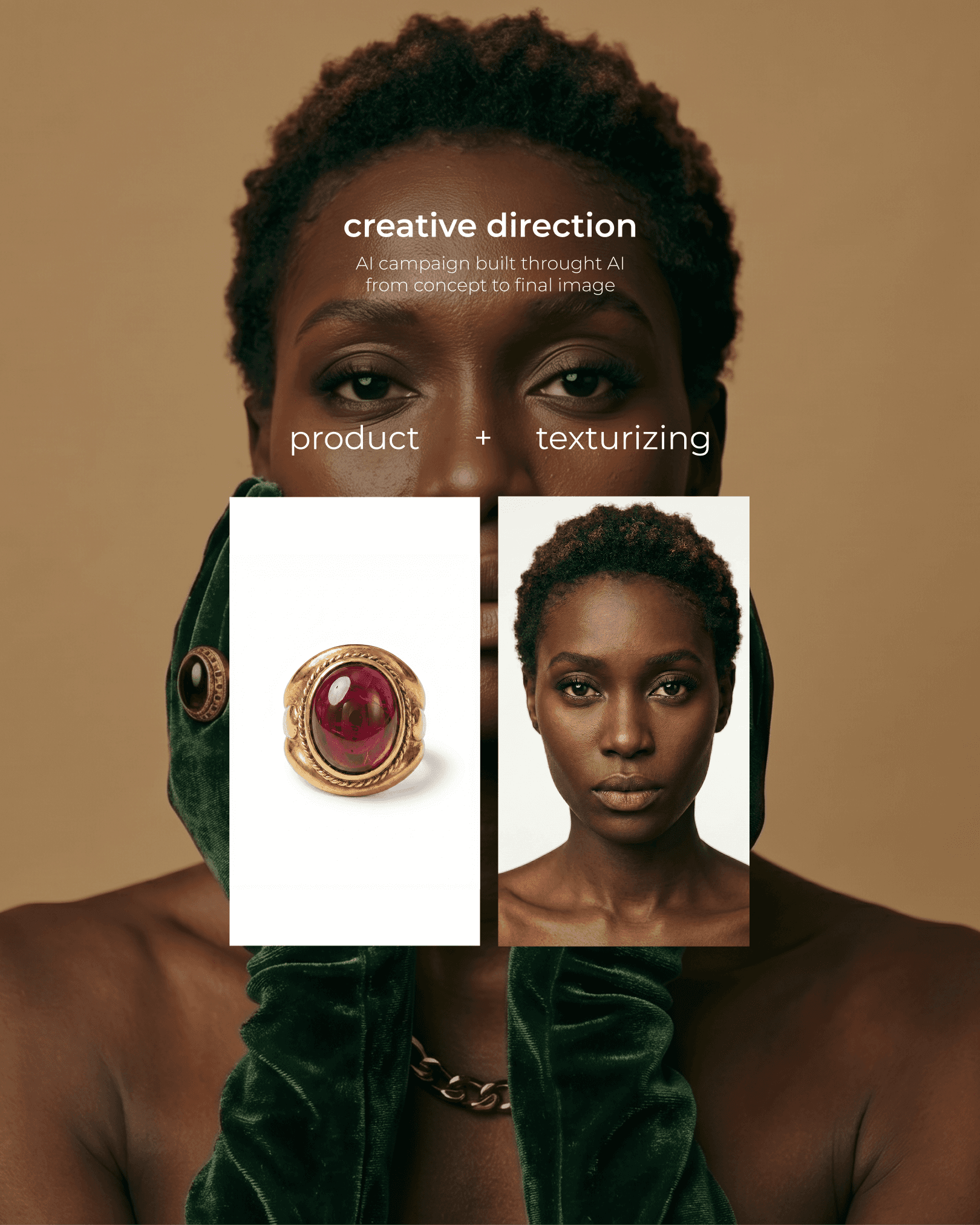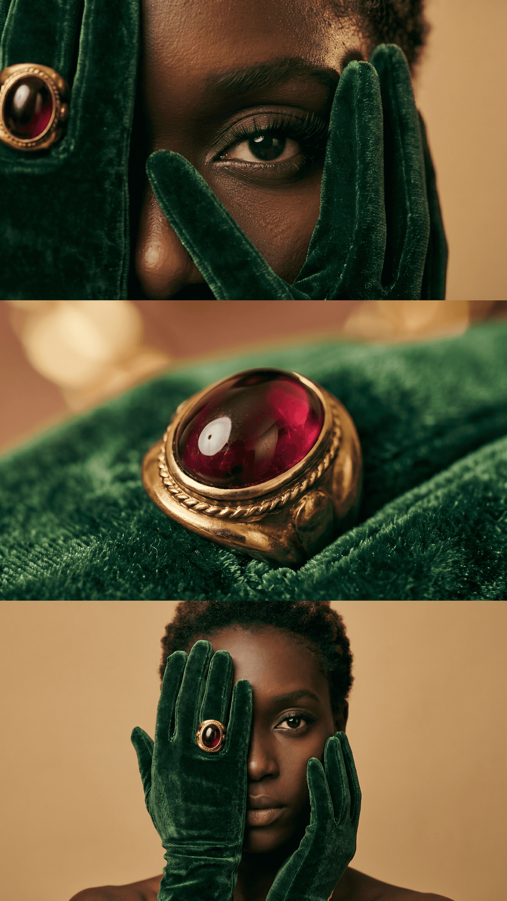 A high-fashion concept merging luxury accessories with AI production to capture the tension between concealment and desire. I directed the full creative cycle — from model generation and emerald velvet styling to cinematic lighting and gemstone detail. This project delivers a premium fashion film and stills campaign built around a single gesture, offering a sophisticated alternative to conventional jewellery and accessories editorials.
